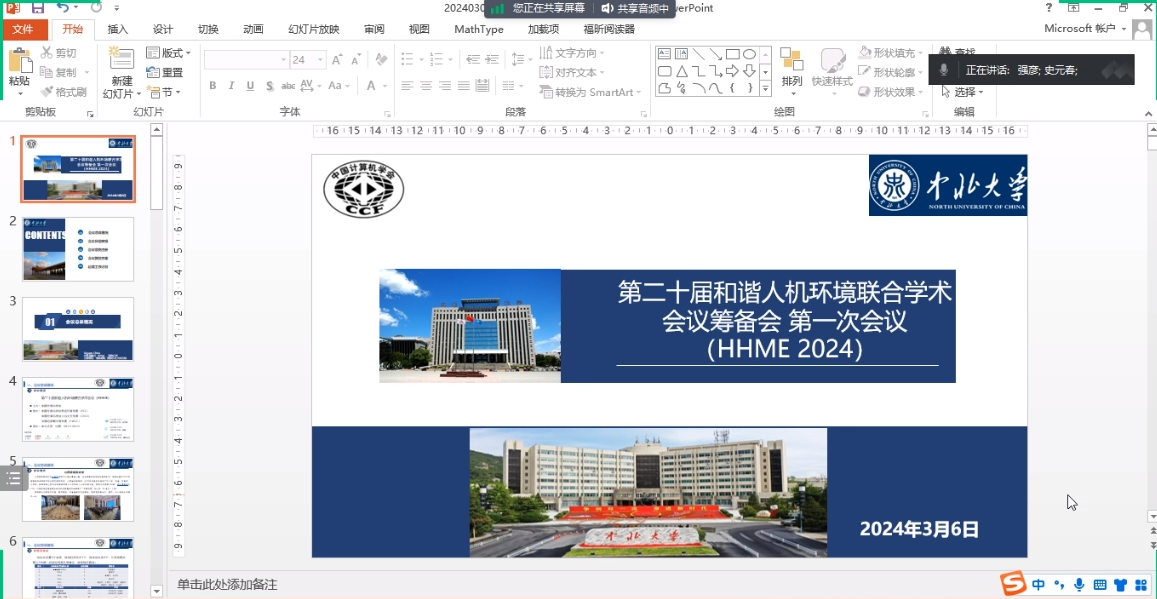 第二十届和谐人机环境联合学术会议(HHME2024)筹备会第一次会议2024年3月6日晚上19:30线上召开,大会由中国计算机学会主办,中国计算机学会人机交互专委(CHCI)、中国计算机学会普适计算专委(PCC)、全国可穿戴计算专委(CWCC)协办,国产调教