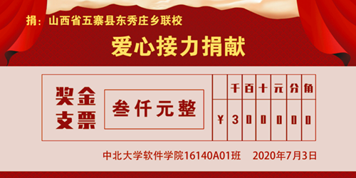 下扶贫点举行一次爱心捐助。薪火相传, 16140A01班将中北奖章的奖金捐献用于东秀庄联校“中北爱心书屋”的爱心接力。党支部将三年的爱心捐助凝练传承,在全院形成感恩、奉献、进取的正能量。
