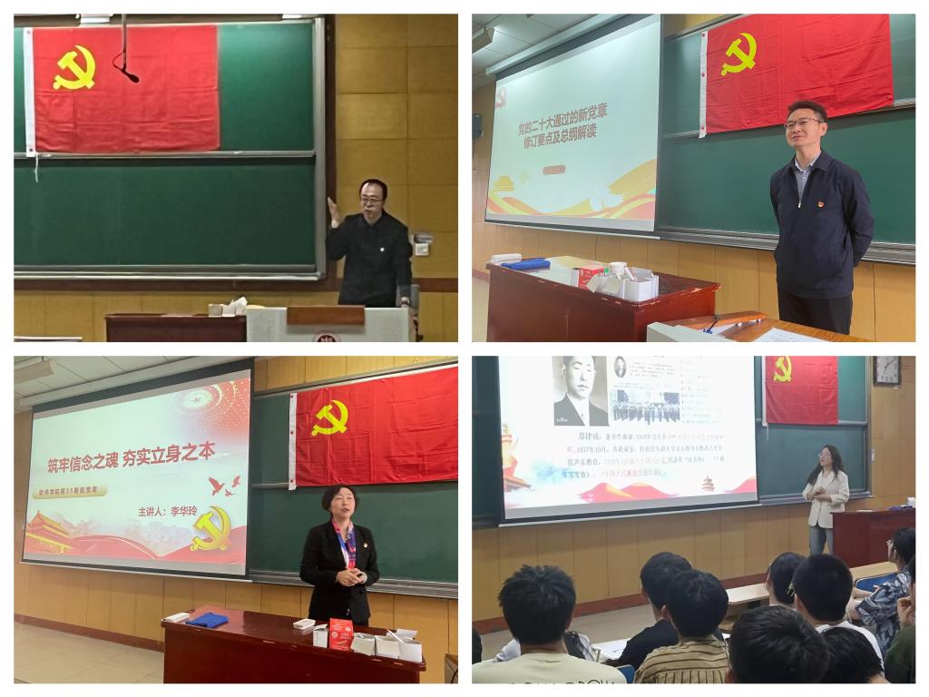 党委委员王宇灵,领域软件与软件服务工程党支部书记富丽贞,学生第一党支部书记成方圆,分别以《党的二十大报告全文解读》《党的二十大通过的新党章修订要点及总纲解读》《筑牢信念之魂,夯实立身之本》《党员的义务和权利》《努力践行中国共产党的根本宗旨和作风》《学习党史,铭记光辉历程》《党的指导思想》《端正入党动机,党员发展培育规范性》为题进行了专题党课讲授。在最后一次党课培训期间,所有学员进行了关于“经过党课的学习,同学们有什么思想转变和收获”的讨论。
