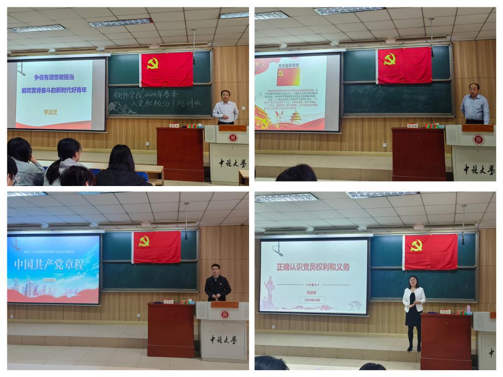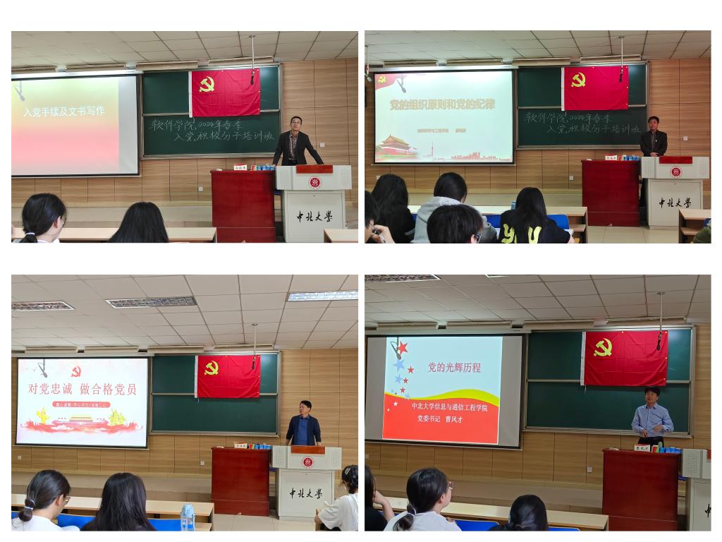 党委书记常旭青、人文社会科学学院党委书记孙俊伟、材料科学与工程学院党委书记廖海洪、航空宇航学院党委书记罗建国、信息与通信工程学院党委书记曹凤才分别以《争做有理想敢担当能吃苦肯奋斗的新时代好青年》《党的指导思想》《党的二十大通过的新党章修订要点及总纲解读》《正确认识党员的权利和义务》《入党手续及文书写作》《党的组织原则和纪律》《对党忠诚,做合格党员》《党的光辉历程》为题进行了专题党课讲授。老师们的课程充实而深刻,极具思想性。通过展示丰富的历史资料、详实的数据和生动的案例,结合党的历史与新使命,从多个维度深入阐述了党的光辉历程、伟大贡献和新时代责任;从他们的工作经验、人生阅历中,诠释了党课培训的重要意义,为广大学员带来了一场场深入解析。